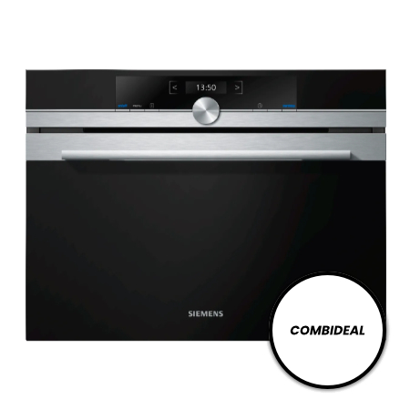 Verkocht als set van 2. Siemens CM636GBS1 oven met magnetron en CF634AGS1 inbouwmagnetron. Samen voor €1300,-